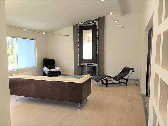 Looking for WOW? This is the spot! STUNNING, dramatic, ONE-OF-A-KIND home, hidden away cul-de-sac location in fantastic neighborhood, has TONS of architectural interest and major COOL factor! As soon as you step through the front door, the wide open flow of the floor plan and incredible light streaming in through all the windows will make your jaw drop!! Living room will hold over-sized furnishings, and features custom signature fireplace and contemporary lighting. Plank flooring throughout most of the house - virtually no carpeting. Dining room has custom built-in cabinetry along back wall - ideal for storing all your serving pieces - and can accommodate very large table & chairs. Family room has WALL OF WINDOWS and is open to the adjacent AMAZING kitchen. A superb gathering area for relaxing and entertaining. Kitchen is a DREAM and features.... WALL of glass doors that swing wide open to backyard for total indoor/outdoor flow! Center island with room for breakfast bar & stools BUILT-IN refrigerator BUILT-IN wall oven & cooktop Overhead range hood Contemporary cabinetry for a super-sleek, modern look. OFFICE NOOK with custom panel doors off dining area makes for a great, tucked-away work station area! Master Suite feels like a separate oasis! With a spa-like open bath area and glass-enclosed shower, combined with an HUGE dressing and closet area, you will have room to roam in this private sanctuary. Master bedroom faces the backyard and also features wall of doors/windows so you can wake up to a gorgeous green view. Soaring, pitched ceiling gives it a great feel of openness. Two additional bedrooms are nearby, along with a gorgeous hall bath, featuring dual sinks, custom finishes, and skylight. Laundry area just in from garage entrance. Two-car garage with good storage capacity. House has a 10,000 sq. ft. lot with AMAZING, private backyard! Recently installed artificial turf, with zero watering costs! Two large raised veggie planter beds just screaming for fresh tomatoes, herbs, etc. Fruit trees. Separate lounge area in back corner makes a great outdoor retreat spot for reading, relaxing, visiting. BBQ area with OUTDOOR SINK and newly refurnished BBQ for all those outdoor cookouts!! Huge patio area for dining and lounging all along backside of house. BRAND NEW A/C split units installed. Will be ready for move-in beginning of October! Shown by appointment. Please call or email to schedule your tour NOW. This RARE home will be GONE IN A FLASH.