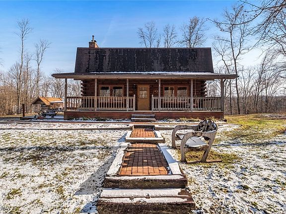 Situated on a 4.76-acre lot & sits on 500ft of frontage to the Mogadore Reservoir this 2-story, 5 bedroom, 2.5 bath home is the perfect retreat from the hustle & bustle of everyday life. Surrounded by shade trees, a picturesque backdrop at the water's edge, access to the Buckeye Walking Trails, & an abundance of natural wildlife, a paved walkway guides you to the large, covered front porch with swings, setting the tone for the welcoming ambiance that awaits you inside. Indoors, be greeted by an interior that exudes a cozy cabin feel, highlighted by stunning hardwood floors, exquisite natural woodwork, striking log beams that grace the ceiling & many windows providing views from every room that enhance the connection to the beautiful surroundings outdoors. The floor plan creates a seamless flow between the living, dining, & kitchen, making it perfect for entertaining. The living room boasts a wood burning fireplace with gas starter for ease of use. The island kitchen, with cooktop, features ample cabinet & counter space plus pantry, along with essential appliances including a double wall oven. Ascend the open staircase from the living room to discover a generously sized master, designed to accommodate various furnishings with an abundant amount of closet space. The other 3 bedrooms are also well-proportioned & carpeted for comfort while a conveniently located full bath features a separate shower & classic clawfoot tub. The basement offers additional living space with 1 finished bedroom, a sizable rec room, & full bath. The laundry & mechanical room, complete with washer & dryer, ensures practicality for everyday living. A spacious rear deck overlooks the tranquil waters, perfect for enjoying leisurely mornings with a cup of coffee or take a break and fish, kayak, boat, or hunt(in season) right from your own backyard. Additional features include a commercial hot water tank, detached 3-car garage, greenhouse, & animal barn, all contributing to the home's functionality.
