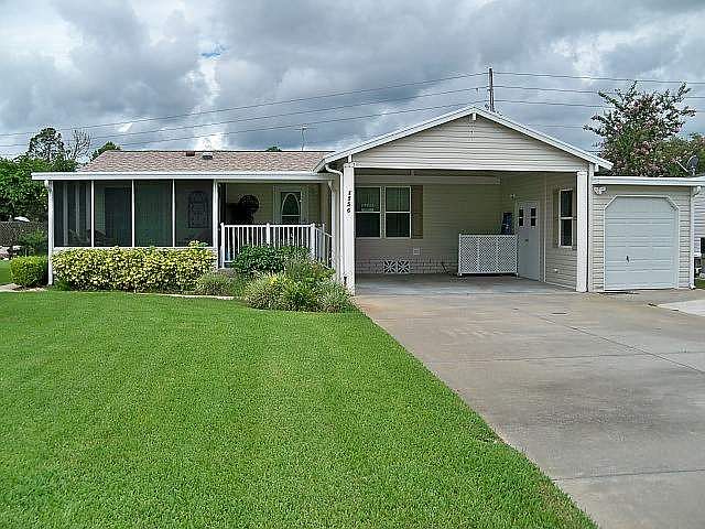 This furnished 3 BR 2 BA home is close to pool and other amenities the park has to offer. This home features great curb appeal, AC 2017, New fencing, Backyard patio, Newer Roof, Laminate flooring, New living room furniture, Laundry Room, New kitchen sink, New Faucets, Garbage disposal, Refrigerator and nice size screen room. A Must See to Appreciate.