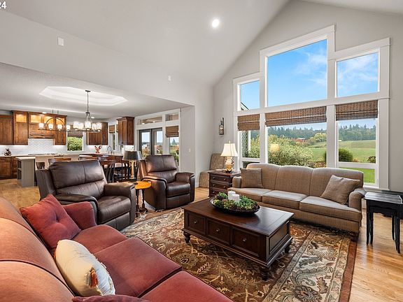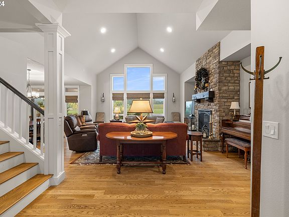 Exceptional One-Owner Custom Home on 1.26 Acres with Gourmet Kitchen & Expansive Living Spaces! This stunning one-owner custom estate, which is an Alan Mascord design and built with attention to detail, sits on 1.26 acres of professionally landscaped grounds. With its striking curb appeal and thoughtful layout, this home offers the perfect blend of luxury and functionality making it perfect for entertaining. The chef’s kitchen features a Thermador range, double ovens, warming oven, and custom cabinetry, creating the ideal space for both everyday cooking and entertaining. The open-concept main level is highlighted by vaulted ceilings and abundant large windows, filling the home with natural light and offering picturesque views of the manicured grounds and neighboring farmland.The spacious primary suite is conveniently located on the main floor, complete with heated tile floors, soaker tub and spacious custom shower in the en-suite bath. The home features two bedrooms on the main, two bedrooms upstairs, as well as an ample bonus room and generous sized office. The 3-car garage is oversized, offering extra storage or workspace. Outdoors, enjoy a covered 14x24 deck piped for gas, with extensive low-voltage lighting. A deer-fenced 5000sqft garden, insulated shop, and RV parking further enhance this remarkable property. Meticulously maintained and carefully planned, this home is an architectural gem that offers both privacy and sophistication.