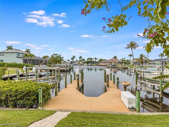 High dry elevation above Ian and 22 minutes faster to the Gulf of Mexico by boat! Situated on a wide gulf access canal in Palm Acres near Sanibel, with longwater sunset views, this 2,453 sq ft pool home has manatee and dolphin shows daily! The backyard dock and boat lift provide quick access to the Gulf of Mexico via meandering tidal Shell Creek for all your saltwater adventures. High ceilings, impact rated windows and doors, metal roof, heated pool, and integrated spa match your selective search criteria. Inside you will find 3 bedrooms, 2 baths, formal dining room, spacious living room, and separate family room with electric fireplace. Prepare your fresh catch of snapper, mackerel, redfish, or grouper in the well-appointed kitchen! Master suite overlooks the caged pool area with views of the deep-water canal, 2 walk-in closets, 3 sinks, glass door shower, and jetted tub. Experience walking out onto this dock and your decision will be an immediate YES! Look at the photos and call now.