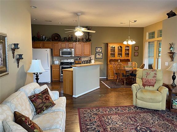 One bedroom ranch villa with zero entry from garage and front stoop sitting on a quiet cul-de-sac. Laminated hardwood floors through main living area and covered patio has been enclosed to create a sunroom with ceramic tile flooring. Glass enclosure was completed and opens to greenspace and walking trail. HOA covers maintenance and insurance on the outside of the building, lawn care, trash and recycle, snow removal over 2 inches, water and wastewater plus clubhouse with year-round pool, hot tub, exercise room and party/meeting room.