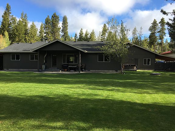 Stately Ponderosa Pines frame the setting for this park like setting bordering public lands. Extended outdoor living area with large fenced and landscaped back yard featuring covered patio, fire pits, hot tub, chicken housing, wood storage, horse shoe pits and state of the art greenhouse. Pride of ownership is displayed throughout this 2004 single level, 3 bedroom, 2 bath, 1712 sq.ft. home on almost an acre. Large open living, kitchen areas with vaulted ceilings, separated master bedroom from other rooms and cozy family room or sitting area just off living room with stone surround Jotul wood burning stove. Spacious kitchen with newly painted cabinets, eating bar, convenient dining area, all appliances included! Paved entry way to the triple car garage with storage and work benches. Additional carport area and plenty of room for RV parking. Two private wells with options to hook into either one.