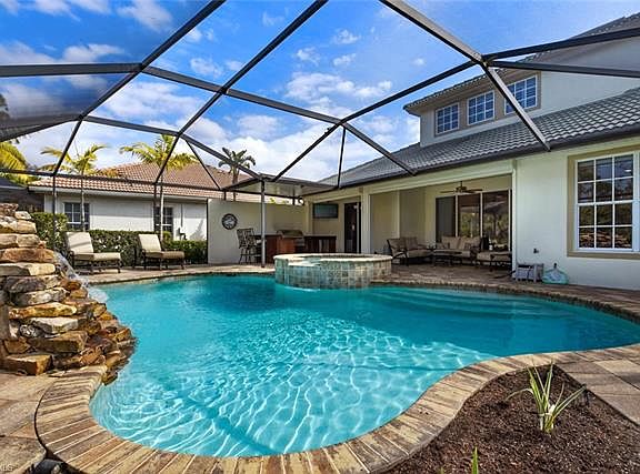 Popular Cielo model with many features - Two story single family home, Beautiful custom built salt water pool, spa and outdoor kitchen with built in grill added in 2011. Plantation shutters, Custom built master bedroom closets, Lanai has automatic hurricane Armor Screen shutters, New HVAC installed upstairs in 2015 and main floor in 2017, ADT active wired security system, 4th Bedroom or den on main floor, New screened front entry.