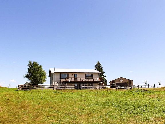 Listed by Tiffany Knight of Re/Max Results. Views, peace, no covenants, Horses, chickens... This outstanding 7.5 acres of rolling plains is only 15 minutes from Elk Vail rd! The view off the front porch is priceless! The upper ranch style home features three bedrooms and two full bathrooms. On the mail level you will find amazing views, an office area, kitchen, dinning room, living room and one bathroom. Below you will find a walk out basement, with amazing views, three bedrooms, a family room and bathroom. Outside you have a 30x50 shop/garage, more amazing views and peace. 7.5 acres and a sweet home for this price is not going to last long. Call today for a showing!
