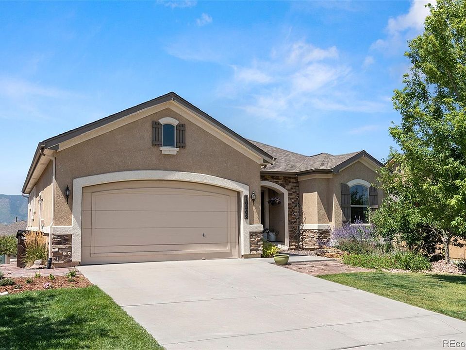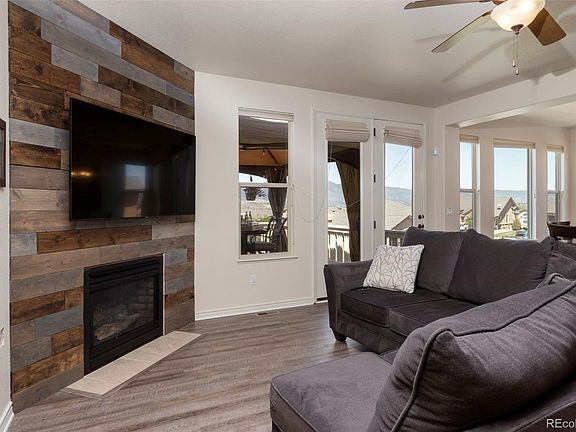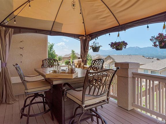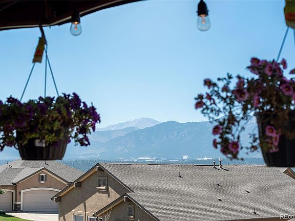 Enter this gorgeous home and have your breath taken away by absolutely stunning views of Pikes Peak and the front range. The new luxury vinyl plank flooring is beautiful and will remain this way as it is scratch resistant and easy to maintain. Enjoy this open floor concept layout on the main level. It offers a large kitchen with huge breakfast bar & generous seating for guests, dining area and a cozy living room. A front of windows allows you to take in the view of Pikes Peak and the front range every day. Master bath has oversized shower, a soaker tub, separate toilet, his/hers sinks, large walk-in closet. Additional bedroom on mainlevel. Downstairs: a walk out basement with a covered patio, a large family room and a beautiful wetbar, perfect for entertaining guests and enjoying the family room, there is a bathroom for guests with a tub shower combination off the living room. The basement offers also three bedrooms, to include secondary master or junior suite. No HOAs! Quick access to shopping and I25 for easy commute to Denver or downtown.