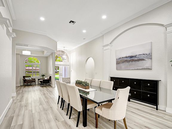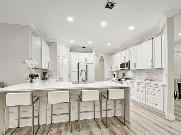 NEW ROOF, NEW Kitchen, NEW appliances, NEW garage door, NEW pool equipment, NEW flooring, NEW baseboards, NEW gutters, NEW plantation shutters, NEW paint inside and out, NEWer A/C units, NEW lighting fixtures & ceiling fans, NEW ring camera, NEW landscaping, .....NEW NEW NEW! Located on a culdesac, this home sits on a pristine lot with no neighbors in back and green areas in front! The luxury vinyl plank flooring throughout, the crown molding, and the plantation shutters greet you as you enter the foyer. Escape to tranquility on this spacious screened in patio equipped with heated saltwater pool. And wait the real piece de resistance is the magnificent dream kitchen complete with sleek white matte appliances with rose accent handles, gleaming quartz countertops,Carrera marble backsplash, a massive snack bar, induction range, convection oven, and ample storage to keep all your culinary essentials organized
