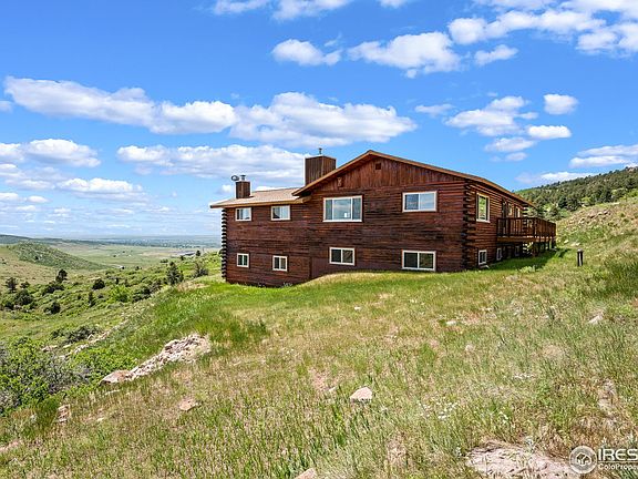 Property sits up on Rabbit Mountain with great views of the city lights at night and when the air is clear views of the Front Range Mountains. This log home on 11 Ac offers an excellent opportunity to live close to the city yet feel like you are away from everything. No HOA fee, covenant controlled. Come see for yourself