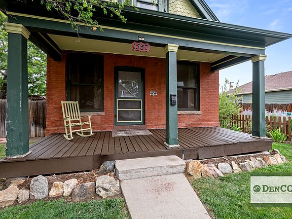 Welcome home to 1557 Dallas St in Aurora! This single family 2 bedroom, 1.5 bath home has been designated as a Historic Landmark. Built in 1892 it is known as the Smith-Cox House. This charming property is located on a grassy lot with large yard and mature trees. The covered front porch is the perfect spot to enjoy your morning coffee or unwind after a long day. Inside the lovely home are welcoming rooms boasting lots of character with hardwood floors, wood moldings, and built-in cabinets. The unique, comfortable home features a double living area with fireplace, dining room with a built-in cabinet, kitchen with gas range and a bonus space in the back of the home that could making working from home a treat. Upstairs are 2 bedrooms with ceiling fans, and a full bathroom with a claw foot tub. The basement includes storage space and laundry facilities. Step out the backdoor to onto your covered back porch and view the oversized, fenced backyard: such a wonderful space to enjoy family time or host an end of summer barbeque. There is a separate shed perfect for a workshop. 1557 Dallas St is located off Colfax walk to nearby City of Aurora Park or Montview Park, or enjoy dinner at one of the nearby restaurants. Stanley Marketplace is about a mile away. Area schools include Crawford Elementary and Boston K-8. Available Now. Please call Mark with DenCO Property Management to schedule a private showing. Tenant pays all utilities. Lawn Service and maintenance included.