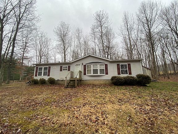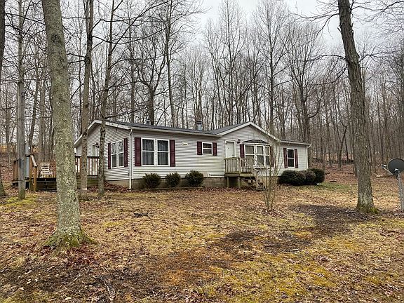 Country home nestled in the woods featuring open concept living room, kitchen and dining room, 3 bedrooms and 2 full baths, nice fireplace in the living room which also has a bay window. Outside you will enjoy the scenery of this 10 acre wooded lot on one of the 2 decks. Fully applianced and ready for a new owner!