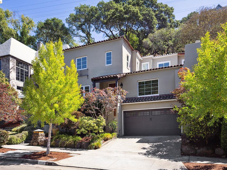 Located on a quiet block, 1557 Trestle Glen is one of the distinctive 1920’s Mediterranean homes dotting the street that retains its period charm, but also includes fabulous updates! Upon entering your attention is immediately drawn in by the striking vaulted wood ceiling & corner fireplace in the oversized living room, making it feel both spacious and cozy at the same time. Across the entry is the light-filled dining room, which opens up to the gourmet chef’s kitchen featuring a great island, Wolf stove and Sub-Zero refrigerator. The main level is completed by a comfortable corner bedroom, full bathroom, and access to the basement-level laundry room and storage area. This lower level also provides an interior entrance from the 2-car garage, making unloading groceries into the kitchen a breeze. On the upper level of the home is the principal bedroom, with enough space for the next owners to add an en-suite bathroom. Also on this level is the third bedroom, a second full bathroom, and the media room/office. This flex space opens to a sweet little deck and a staircase to a larger upper deck, perfect for entertaining. 1557 Trestle Glen is part of a welcoming neighborhood with great access to food & shopping, and located near a Transbay bus stop & Hwy 580, making life easy!