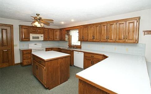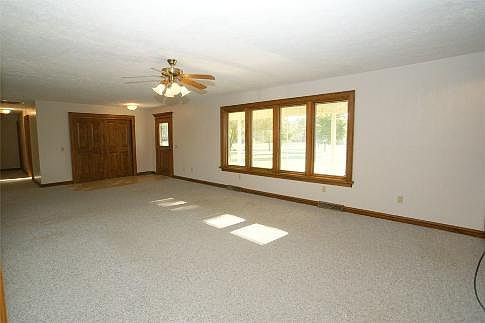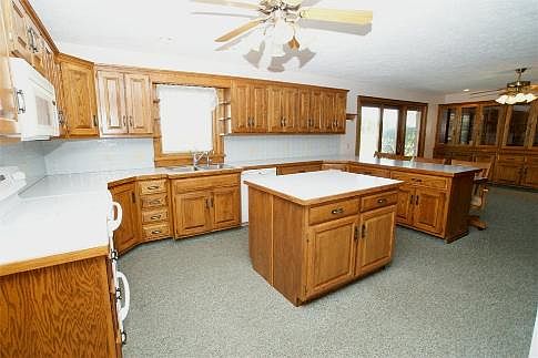 Country Ranch on 2 Acres. Custom Graber Woodwork highlighted throughout home with kitchen cabinetry, built-in entertainment system in living room, built-in china cabinet in dining room, built-in dresser in master bedroom. This custom kitchen includes eat-in bar, island, built-in pantry & base cabinets with pull-outs, planning desk, and open to dining. Other features are attached finished 2 car garage with summer kitchen, (40 x 60) outbuilding with overhead door, covered porch, and concrete driveway. Don’t wait!