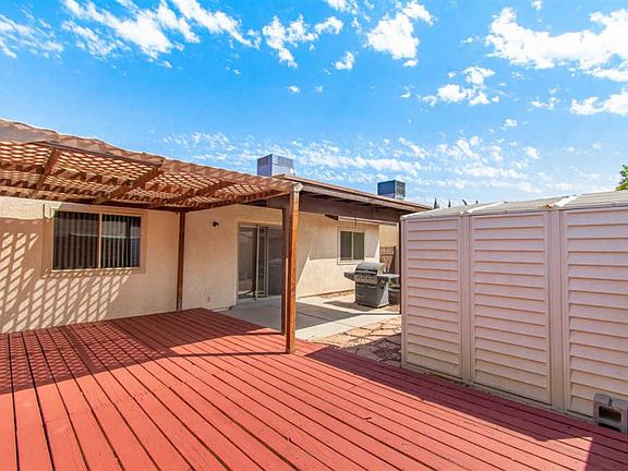 WOW! This is it! This wonderful Sunset Mesa home is nice and clean and just around the corner from the community pool. It features great Upgrades that Count like Dual Pane Low E Windows throughout including Sliding Glass Door with blinds inside, Air Conditioner upgraded in 2018, all Smooth finish ceilings- NO POPCORN! 3 bedrooms in a Split floorplan with a super cute backyard that shows off a Redwood Deck! Call us today for your opportunity to fall in love with this cute home!