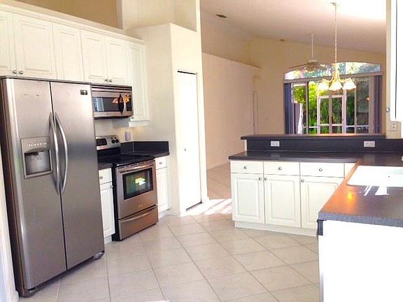 This home offers new, wood laminate floor in Master, freshly painted interior, with new stainless steel appliances, new A/C, new patio in back, hurricane impact windows in bedroom and the kitchen. Kitchen has 42 inch cabinets and open floor plan. Their is Tile in living room and screened in patio. Very Active 22, 000 sf clubhouse with Olympic-sized heated pool, 6 Har-Tru tennis courts, billiards, ballroom and more! Pet friendly community...Guard Gated community.