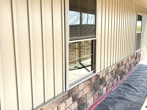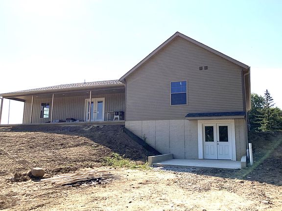 Brand new 4 bed, 3.5 bath ranch w/walkout on 7.89 ac. Relax on covered front porch and back porches. Handsome entry door w/sidelights opens to tiled foyer w/coat closet. Great room has hardwood floors, gas fireplace w/stone surround and wood mantle, door to the back porch. All doors to back porch have built in blinds. Gourmet kitchen w/island, pantry, custom hickory cabinets, appliances: gas range, fridge, dishwasher and microwave. Spacious main floor master suite has walk-in closet, door to back porch, private bath with tiled floors, double sink vanity, tiled shower with glass door, another good sized closet plus a separate linen closet. Two more good sized bedrooms with generous closets and a second full bath with double bowl sinks and tub/shower combo in between. Bedroom #4 could also be office/den, with a third full bath across the hall. Laundry room off the garage mudroom has a half bath too. All bedrooms have ceiling fans. Full poured wall walkout basement w/rough in for bath and a door that opens to rear concrete patio. Attached 2 car garage with opener and concrete apron. Separate 720 sf pole barn with electric. New septic system. New well pump, tank and water softener. Gorgeous wooded acreage with plenty of room to garden and play.