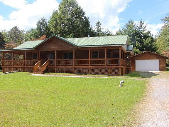 Beautiful well maintained log home on 1.7 acres. This home has 4 bedrooms, 3 full baths, living room with fireplace, kitchen, dining area, and a large family room. There is a wrap around porch, a two car detached garage, and a large pond on the property. You will be impressed with this one!