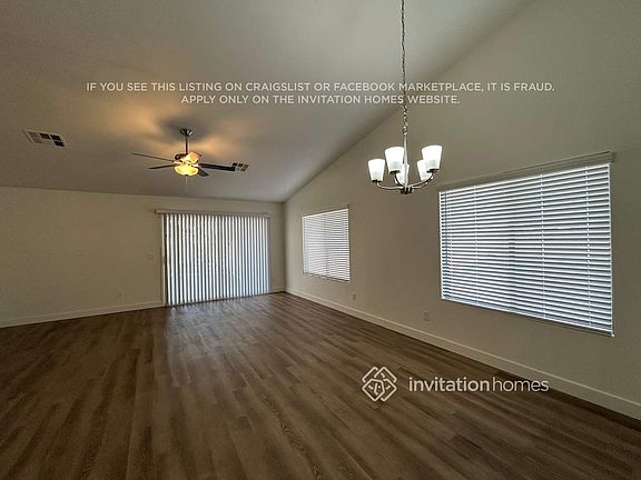 Lease this home and get more from Invitation Homes professional property management. This home comes fully loaded with quality amenities, must-have services, high-end tech and ProCare professional maintenance. Your estimated total monthly payment is $2154.90, which includes base rent and required services. Base rent varies based on selected lease term. This house is the perfect balance between beauty and function. Here you'll get comfort paired with a stylish design. Now you'll have the space to comfortably host family and friends. Make memories in this home that comes with tall ceilings, appealing luxury vinyl plank floorings, and accent lighting. This kitchen has everything you could need to set up your preferred cooking space. Charming cabinetry, stainless-steel appliances, and granite countertops are ready for you to take over. All it needs is a trendy sign with a witty joke. And when you walk through the back door, you'll find your own personal oasis. A fenced backyard with desert landscaping. You'll have plenty of space to lounge and relax on the patio or in the pool. Neighborhood amenities include a tot lot and community pool. Make this your home and apply online today!