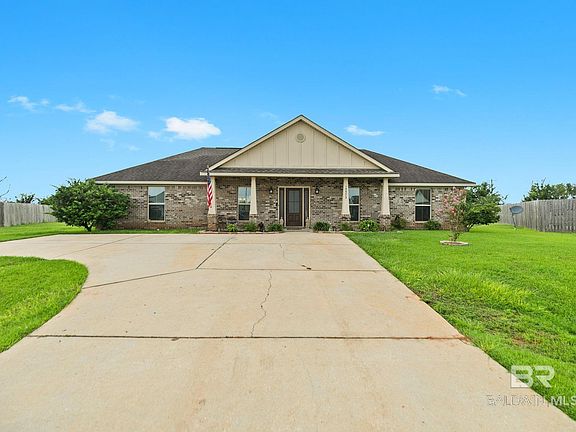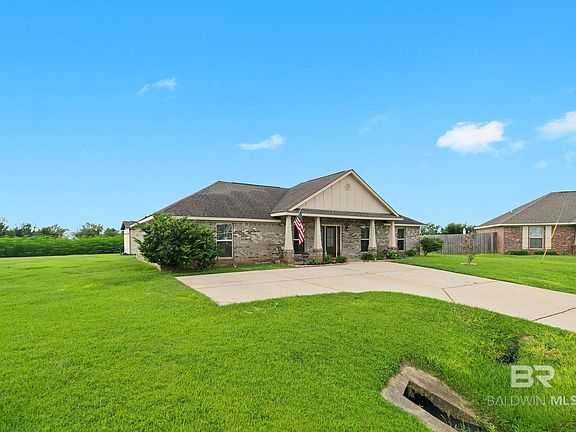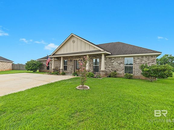 Looking for a quiet neighborhood away from all the hustle & bustle of town? Look no further! This spacious 4 bedroom, 2 bath home with open floor plan is just what you are looking for! With a front porch that invites you to unwind and enjoy the quiet surroundings. The outside of the home boasts one of the largest lots in the subdivision! Plenty of room to store your boat Entertain friends and family on the back patio. The children will love the built in sand box. Step inside, and you'll discover a thoughtfully designed interior that combines comfort and functionality. The open floor plan connects the living room to the kitchen and dining area. To the right, this home offers 3 bedrooms and 1 full bath and to the left is the primary bedroom with ensuite bathroom & walk in closet. Freshly painted interior!! New microwave installed in August, 2024. AC was serviced & capacitor was replaced in August, 2024, GFI at the AC unit, doorbell at front door & shower faucet insides. Carpet was new in 2022. The blower on the ac was replaced in 12/2022. Seller offering a 1 year home warranty with Old Republic! Located in Hawthorn Subdivision. NO HOA & NO RENT RESTRICTIONS!! Home being sold As Is. Title work has been started with Anchor Title Company in Gulf Shores. Buyer to verify all information during due diligence.