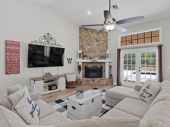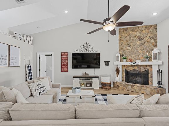 This remodeled home is truly one-of-a-kind, with its 2022 roof and prime location on a corner lot with access to both paved and dirt roads. Inside, the vaulted ceilings and open floor plan make the space feel bright and airy, with 3 bedrooms, 2 bathrooms, and a den/office providing ample space. The split bedroom layout ensures privacy, while the fireplace and gas grills both indoors and outdoors make entertaining a breeze. The primary suite features a luxurious clawfoot tub with 2 shower heads, and the back patio is the perfect spot for relaxation, with a free-form saltwater pool, outdoor shower and waterfall hot tub. Additionally, the entire house has a commercial RO system, providing purified water for all uses. To top it off, a separate gate behind the house provides easy access to a 20x40 metal carport, ideal for parking an RV or boat. Relax by the firepit. Yard is fully fenced in. With too many upgrades to list, this remodeled home offers an exceptional level of comfort and luxury.