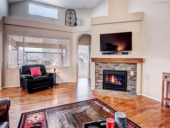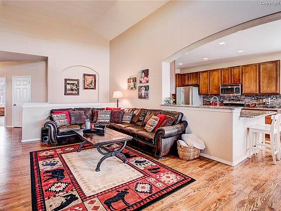 Impeccably maintained ranch style home with main level living, upgrades galore and views! This home sits on a quiet, well manicured lot with breathtaking views of Pikes Peak and the entire Front Range. Open concept floor plan with a gourmet kitchen featuring 42 inch maple cabinetry, solid granite counters, stainless steel appliances, and large pantry. The main level living area has vaulted ceilings and stunning mountain views along with a beautiful stone fireplace to keep warm by on chilly Colorado days. The large main level master has an attached 5 piece bath also featuring solid granite counters, custom tile and stone work and a walk in closet. The main level is completed by a an office with french doors, 2nd bedroom and a full bath. The garden level basement allows for lots of light with 10 ft ceilings, a huge rec room with surround sound and full wet bar with granite counters and beverage fridge. There are 3 additional bedrooms in the basement, 1 with an en suite full bath and walk in closet. The level fenced yard and covered, no maintenance deck is perfect for relaxing and enjoying the Colorado outdoors. Don't forget about the 3 car garage offering additional storage! Close proximity to parks, schools, trails and shopping and easy access to Colorado Springs or Denver for easy commutes. Come see your new home today!