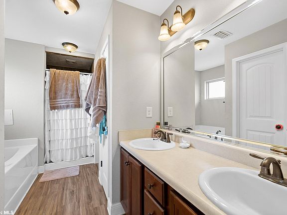 Situated at the end of a cul-de-sac in Foley's Hawthorn neighborhood, this adorable split floor plan home has so much to offer! Centrally located to the white sandy beaches of the Gulf Coast, the beautiful Magnolia Springs, and the heart of Foley, this is the perfect spot to take advantage of all the dining, shopping, and entertainment the area has to offer. This home features some nice upgrades such as vinyl flooring throughout, an extended concrete driveway, and a large fenced/gated backyard. The master bathroom is a dream too with a soaking tub, upgraded over-sized custom tile shower with double shower heads and bench, and a walk-in closet. This is also one of few subdivisions that do not currently have an HOA. If you're looking for a quiet neighborhood in a great location, this is it!