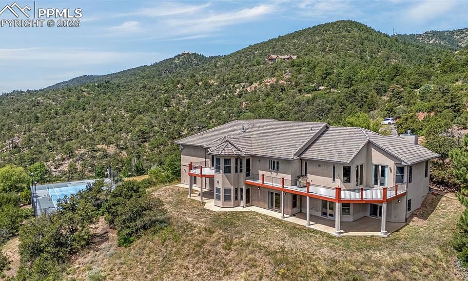 An Unparalleled Estate in Turkey Canon Ranch – Poised on 35 pristine acres overlooking the 115 Corridor, this 5-bedroom, 5-bathroom one-owner masterpiece offers a unique blend of Tuscan style, rock-solid construction and breathtaking natural beauty. From the moment you enter, you'll be enchanted by vaulted ceilings, high-end materials and luxurious finishes... and you'll be Wowed by views that stretch for miles, including the majestic Sangre de Cristo Mountain Range. The views are fully enjoyed from any of the multiple composite decks. The gourmet kitchen is a showcase of refinement, adorned with polished stone countertops, double ovens and a custom pantry with pull-out shelving. Durable, waterproof laminate wood floors flow seamlessly throughout, uniting each space with understated sophistication. A versatile bonus room—perfect for a private Den or distinguished Study— makes a dramatic first impression. The Master Suite features vaulted ceilings, a private deck, his and hers closets and one of the most impressive Primary Baths you'll see. ALL 5 Bedrooms walk out to views- the functionality and layout of this home is truly unmatched. For the enthusiast or collector, the nearly 1,800-square-foot garage is nothing short of remarkable, providing space for an impressive array of vehicles, equipment, or anything else (there is a bathroom in the garage . The Outdoor Living space is elevated by multiple composite decks, or lower level patios that capture golden sunrises, fiery sunsets, and the tranquil sweep of the surrounding terrain. A private (multi-sport) Tennis Court further enhances the estate’s resort-like amenities. This is the very best the Colorado lifestyle has to offer!