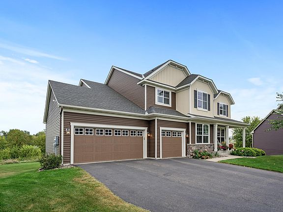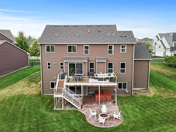 This gorgeous build by Mattamy Homes is situated on a prime lot, just under .5 acre with serene views of the pond and lots of wildlife. Quiet cul-de-sac and you’ll love your private backyard, with no views of the neighboring houses. Large main level includes 9ft ceilings, 8ft doors and oversized sliders, large chef’s kitchen with butler’s pantry, office, formal and informal dining spaces, homework/study area and mudroom as you enter through garage. An abundance of natural light fills the space, and I have no doubt you’ll spend plenty of time on the large, maintenance-free deck. You’ll find 4 bedrooms upstairs, along with a spacious loft and laundry room. Lower level with walk-out is equipped with a 5th bedroom, full bath, exercise room, family room with wet bar, and tech room. Step outside, to a beautiful stamped concrete patio and enjoy hot tubbing and fires around your built-in firepit. Garage is an oversized 3.5 stall, so plenty of room for all the toys. You'll also have the convenience of an in-ground irrigation system and invisible fence... what more could you ask for? This is a premium build, better than new, and move-in ready!