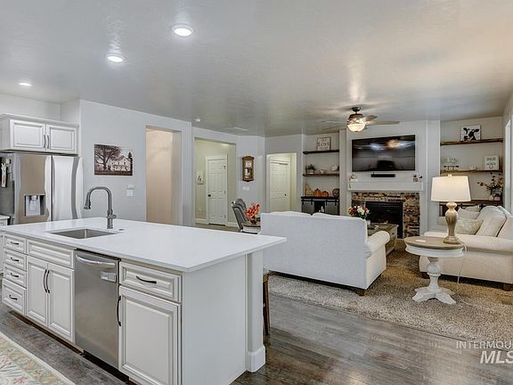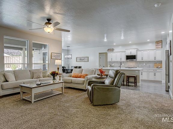 Move-in ready 2016 home w/ 3 bedrooms, 2 baths, plus an office that can serve as a 4th bedroom. Open concept living area w/ custom built-ins and shutter blinds throughout. The kitchen boasts ample updated counter space, perfect for family gatherings, & soft-close maple drawers. Enjoy comfort w/ large ceiling fans in both the master bedroom & living room. The outdoor space features a fully covered patio w/ an updated concrete addition, wrap-around sidewalk, and vinyl fencing for privacy. Both garage doors have electric openers, & the 3-car garage provides plenty of storage. Located just 10 minutes from Karcher Mall, I-84, and close to Lake Lowell, this home offers the perfect blend of convenience and modern comfort. Ready to welcome you home!