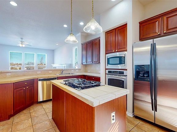 - Ceiling Fan(s), Eat-in Kitchen, Kitchen Island, Tile Counters, Vaulted Ceiling(s), Walk-In Closet(s)
