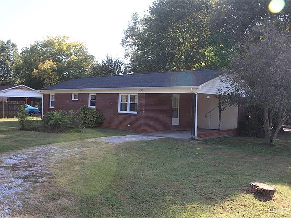 This brick ranch home is located in a neighborhood just north of Shelby, NC. It has three bedrooms, one bathroom, a living room, and an open dining and kitchen area. The corner lot is just under a half acre and includes a storage building.