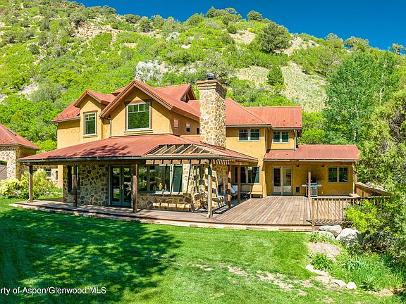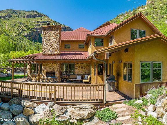 The comfort of the home surrounded by the beauty of Glenwood Canyon, makes it easy to leave your troubles behind. The warm, open floor plan allows for many people to come together, yet retreat to privacy at days end. There are top-of-line finishes throughout this well thought out custom 4 bedroom home designed by Dean Moffett and attached studio ADU. Amazing woodwork and multiple built-ins throughout, 2 car garage, and enough windows in every direction to take in the views of the towering canyon walls and all day sun. Multiple entertaining areas including 3 separate living areas, a huge wrap around deck with an outdoor fireplace and water feature, 10 private separately deeded acres and only steps from the Jess Weaver hiking trail, Colorado River, and Glenwood Springs Canyon bike path.