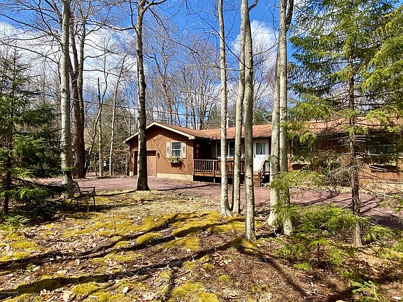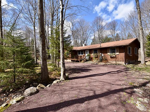 This charming 3 bedroom single-story home is located in highly desirable Lake Naomi. This mountain gem features cedar walls and hardwood floors throughout. There is an open concept great room with cathedral ceiling, propane fireplace, open kitchen with stainless appliances, separate family room, mud/storage room and large enclosed porch. This home has new windows, a generator, two thru wall A/C and heat units, circular driveway and attached one-car garage. The property backs up to a greenbelt connecting to State Game Lands. Recreational amenities in Lake Naomi are plentiful including lakes, beaches, golf, tennis and indoor recreational facility, which is a short walk from this home. Easy highway access, near Kalahari resort, State parks and game lands, skiing and other attraction