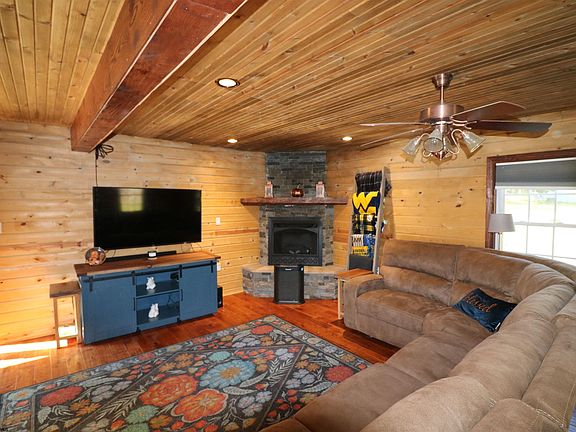Updates abound in this reimagined farmhouse with modern amenities and flat land to roam. Large kitchen with quartz countertops, walk-in pantry, and stainless steel appliances. Huge, bright, great room with gas log fireplace, custom wood walls, and tongue and groove ceiling. Shiplap walls throughout. Wide plank oak flooring throughout the main floor and primary bedroom. Cherry built-in drawers in the walk-in closet. Ceiling fans in the living room and in all bedrooms. Large detached 2-car garage with storage and dedicated home office/studio in the back. Minutes from Liberty High and Mountaineer Middle schools. 5 minutes to route 50, and 12 minutes to I79. High-efficiency HVAC, tankless water heater installed in 2015, HAU septic installed in 2016.