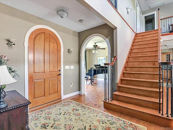 30 acre retreat off US 301 btwn Mechanicsville & Bowling Green. All 3871 sqft brick home features an open floor plan, great for entertaining. There is a 1st-floor master suite & a fully finished basement that could be used as an in-law suite (no steps) or game room w/ its own full bath. Enter the 2 story family room featuring a stacked stone fireplace with gas insert & redwood mantle & a view of the amazing kitchen w/ custom maple cabinets, Cambrian quartz counters, beverage cooler, pendant lighting, and walk-in pantry. Just off the kitchen is a light-filled dining room. The 1st-floor master suite opens to the deck, has a walk-in closet & a tiled bath. On the 2nd floor, there's a media room, large bright sitting area, two additional bedrooms and full hall bath. The basement is on grade & finished with a full bath. Extra Features inc. - Open floor plan w/ great outdoor views, open stairs w/ wrought iron spindles, upgraded lighting fixtures , whole-house generator, whole house sound system with deck speakers, beautiful ground deck, 3 waterfall koi pond and 3+car garage, AA&T w Broad Band Internet Service, Satellite TV, Sq.Ft. is approx-see plans.