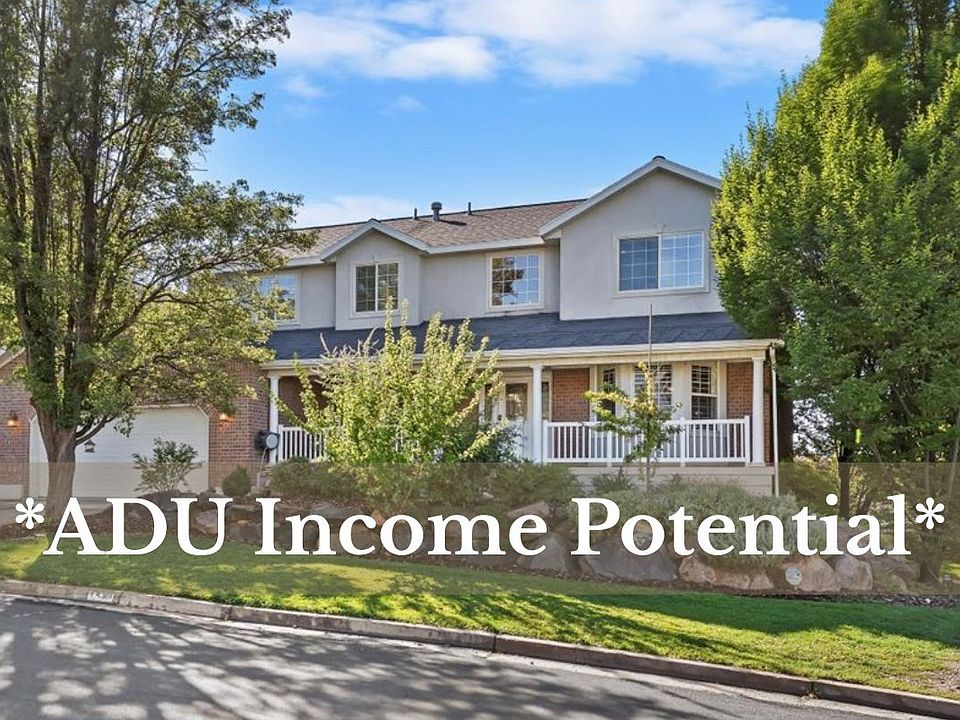 **ADU income potential in East Layton.** This charming home offers over 2,600 sq. ft. on the main and upper floors, plus a finished basement apartment (Tenants' lease ends Nov. 1). The main level features a formal living room, den/office, and updated kitchen with quartz countertops, new appliances and abundant cabinetry. Beautiful hardwood floors run throughout the main and upper levels. Upstairs are four bedrooms, including a primary suite with two walk-in closets and a private bath with separate tub and shower. A large covered deck spans the back of the home, and the corner lot includes mature landscaping for added privacy. Seller will consider a short-term lease with option to purchase, ideal for buyers who need to sell their current home before moving. Conveniently located near Hill AFB, Highway 89, I-15, Sand Ridge Park, and Kays Creek Parkway Trail.