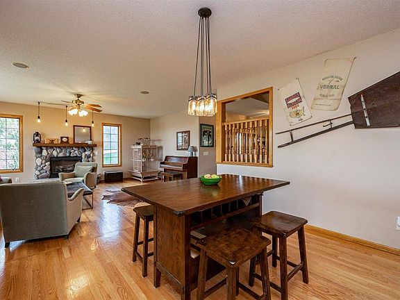 Picturesque acreage off a hard surface road waiting for a new owner. This dream property has been renovated with farmhouse details but perfect for the busy owner. Outbuildings waiting for your chickens, goats, cows, or bees! Amazing setting for this traditional two-story with five bedrooms (4 on one floor!), office and formal dining room, walk-out, 2 full kitchens, outdoor bar area, stamped concrete, stone fireplace, wood stove, and craft room. The spacious master bathroom has been remodeled and updated and overlooks the countryside. Some of the pasture is fenced but not all.