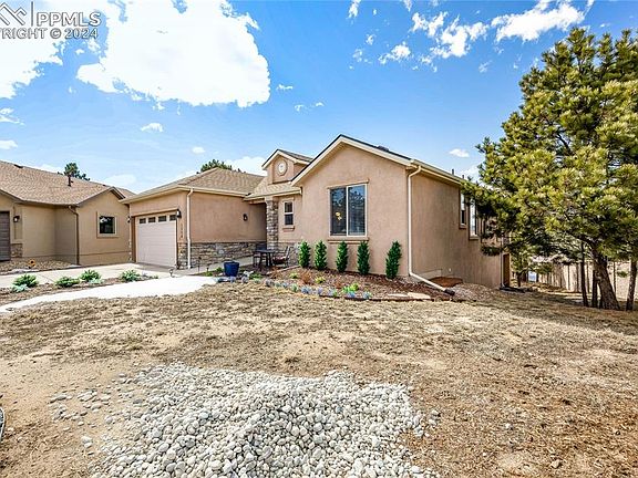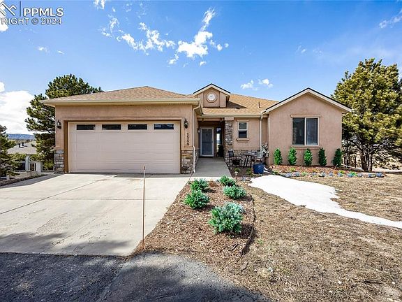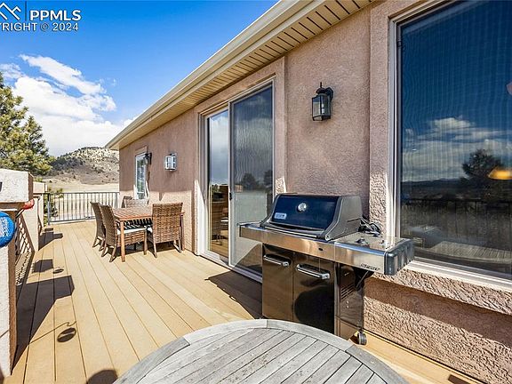 Single Family Home and part of a Patio Home Community, which includes yard maintenance and snow removal! Breathtaking views, views, and more views all throughout this open and spacious ranch style home. Welcome to your oasis! Don't let the age of this home fool you, it shows like new construction, solidly built with unique and custom features. Immaculately taken care of and boasting such amazing views of the front range. Expansive deck as an extension of your living room, Full length upper balcony & lower level patio and a walk-out basement. During the cooler months find comforting warmth with the stone-framed gas fireplace. 4 sizable bedrooms, 3 bathrooms and a finished basement. As you enter this sprawling ranch home, main level shows stunning darker toned gleaming oak floors, tall/vaulted ceilings, a huge great room, beautiful kitchen with island and pantry, cabinetry with frosted doors, tile backsplash and all appliances included. Gas stove! Main level laundry room, washer and dryer included, mud room/laundry with built in cabinetry for additional storage. Main level primary bedroom, primary features tall ceilings, an ensuite 5 piece bath, deep jetted tub, huge walk in closet with custom shelving, tile floors and a private balcony access. 2nd main level bedroom is sizable with custom closet shelving and next to 3/4 guest bath. Basement is open and tons of natural light, walk-out access, 2 large bedrooms, a huge bonus/family room and wet bar with included microwave and mini fridge and an additional full bath, perfect for entertaining guests or a tenant. Come see this warm and welcoming home. New roof in Oct. 23' and air ducts cleaned Mar 24'. SAFE and QUIET neighborhood. Low maintenance home. Full length deck. West facing upper windows coated with UV film for that added efficiency and protection. Easy access to I-25, quick trip to several Metropolitan areas! Palmer Lake, Spruce Mountain and Santa Fe trails. Hiking, biking, and fishing near. Move-in ready!