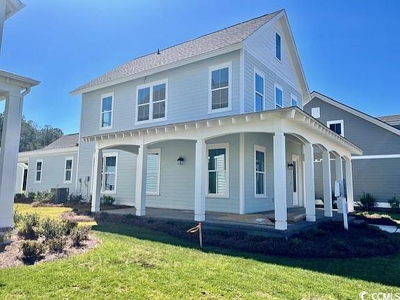CHECK OUR OUR VIRTUAL TOUR OF THIS BEAUTIFUL AVAILABLE HOME. WILL MAKE A FANTASTIC PRIMARY OR SECOND HOME. Builder is a Popular Regional Builder in North Carolina/South Carolina markets for over 30 years building Low Country/Coastal Style New Homes. Always paying attention to architectural details. Quality and Customer service is tops with this N.C./S.C. homebuilder. This home is completed and ready for August September closing. This is the Low Country Architectural Designed Winslow Plan with primary suite on first floor, two spacious bedrooms, bath, and loft on second floor . Open/bright/spacious ! Beautiful Low-Country/Charleston feel!! Sit and relax on spacious wrapped front porch or rear porch. Beautiful Designer touches/upgrades. Engineered hardwood floors welcome you and flows through the first floor including Primary Bedroom. and upstairs Loft. Tile floor in both baths. . Spacious Family room with lots of windows ! Gourmet Kitchen is framed with Timberlake Barnett Linen Painted Cabinets, natural gas cook-top, wall oven/microwave, vented hood above cooktop. and quartz countertops, tiled backsplash and large island for extra seating /entertaining. Kitchen pantry is fabulous with wood built-in shelves/cubbies for dishes, glassware, pantry items, etc. Pullout trays in lower kitchen cabinets allows for more stackable space for pots/pans/bowls, etc. . built-in bench in hallway Primary bath offers garden tub and tiled walk-in shower, Blanco Maple Quartz vanity countertop, rectangular sinks, tiled floor, Beautiful Timberlake Barnett Navy Painted Cabinets. Beautiful and relaxing!! Large primary walk-in closet. Guest Bath with Timberlake Barnett Navy Painted Cabinets, rectangular sink, and Quartz Blanco Maple vanity top, tiled floor. Detached 2-car garage(400 sf) is not included in total sf. show. Woods are across the street in rear of home and a beautiful park setting in front of homesite. Ask onsite agent for details about how you can save thousands of dollars towards additional allowable options/upgrades and closing cost. with our builder promotion. Builder has staged this beautiful home. Furniture and furnishings shown are staged for illustrative purposes only and do not convey. Seller does not guarantee sf. measurements. Buyers can measure for themselves as needed. Homeowners can golf cart from SayeBrook over to the Market Common District for additional shopping, entertainment, restaurants, etc. and also access the State park beach from that area. .Life is good at Sayebrook. Beautiful tree-lined streets with sidewalks, parks, walking trails, lake., Amenity center includes a community meeting house, pool, covered pavilion, playground, basketball court,4 pickleball courts, and fire pit. Ready for Summer Fun! Coastal, small-town charm within walking/golf cart distance to SayeBrook Town Center. A natural gas community. Fiber cement exteriors, lawn sprinkler system, and security system. Come tour our staged model home and available homes for quick move-in!