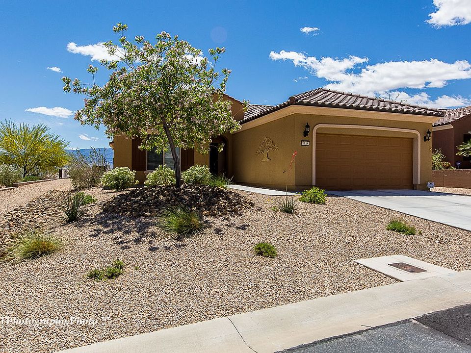 SID PAID $7,283! Beautifully upgraded Laurel model 1571 sq. ft. 2 bed 2 bath + Office/Den on a large VIEW lot. Hardwood flooring thought out this lovely home with 18" on the diagonal tile in the bathrooms and laundry. Custom paint on all walls and the kitchen has pull out upper drawers and under cabinet lighting. Spectacular Views of the southern mountains from living and dining rooms and the master bedroom. The garage has epoxy flooring, insulated garage door, keyless entry and built in cabinets and a water softener. Going out to the long covered patio you will enjoy breathtaking mountain views on an elevated spacious lot. Don't miss out on seeing this immaculate well cared for home with mountain views. As a resident of Sun City you enjoy reduced rate at Conestoga golf course, 10% discount at 1880 Grille, numerous amenities at the 30,000 sq. ft. Pioneer Recreation center such as indoor and outdoor pools, tennis, pickle ball, bocce ball are just some of the activities available to residents. Come see for yourself life does not get better than this!