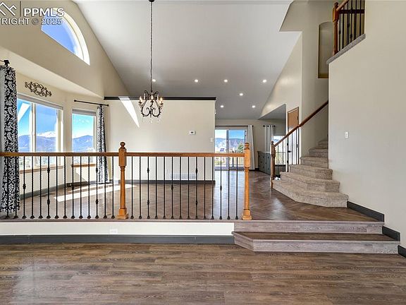 Backing to open space on a .25-acre lot with soul-stirring views of Pikes Peak and the Front Range, this home offers more than a backdrop—it offers a daily reminder of why we live in Colorado. Nestled in the foothills of northern Colorado Springs, this thoughtfully refreshed Gleneagle home combines comfort, style, and purposeful design. The heart of the home is a professionally remodeled kitchen (2022) featuring vaulted ceilings, Cambria quartz countertops, a stunning wave backsplash, two-toned cabinetry with soft-close drawers, under-cabinet lighting, crown molding, and stainless steel appliances including a double oven. A generous island with white cabinetry, built-in trash pullouts, and pantry with appliance plug-in and pullouts add function to its flawless form. The main level showcases luxury plank flooring in a herringbone pattern, while a new expansive composite deck (2022) with a natural gas line for your BBQ grill invites you to take in those iconic Colorado sunsets. Upstairs, the primary suite is a true sanctuary—stunning views, vaulted ceilings, a walk-in closet, and a 5-piece ensuite with soaking tub and standalone shower. Two additional bedrooms share a full bath, while the finished basement offers a versatile recreation room with built-in desk space, a third full bath with jetted tub, heat lamps, and heated tile floors. Additional highlights include: New carpet on upper level (2025), central A/C, 2 hot water heaters, new roof (2025) with transferable warranty, an expansive crawl space for storage, and a private hot tub for unwinding beneath the stars. Located in an established neighborhood with over 100 acres of open space and nearby access to Fox Run Regional Park’s 400+ acres with a lake, trails and forest. Residents enjoy top-rated District 20 schools, a wealth of shopping and dining, and easy access to I-25 for commuting to Denver, military installations, and the U.S. Air Force Academy. This is Colorado living—elevated.