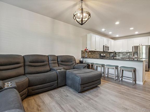 Welcome to this stunning, maintenance free, 3 bedroom; 3 bathroom townhome in Arvada Westown. Situated on the west side of the community, facing mountain views, you'll be impressed as you walk up to the entrance off McIntyre Street. Notice the professionally landscaped, low-maintenance courtyard w/artificial turf; including beautiful flowers, plants & bushes! Upon entering, you'll love the high ceiling & laminate flooring throughout the main level. The powder bath has easy main level access for you & your guests. Enjoy the spacious kitchen w/granite counters flowing throughout. Overlook the kitchen and living room while eating a snack or drinking your favorite hot/cold beverage. Need abundant cabinet space & an island? This kitchen has it including gas stove & Whirlpool stainless appliances! This open floorplan has a relaxing living area featuring a multi-colored electric fireplace for ambiance to enhance special character of the space. As you make your way to the upper level, the primary bedroom is large & spacious. Be sure to take in the view of the mountains right from your window. Notice both walk-in closets to accommodate your summer/winter wardrobe! The 5-piece bath has stunning counters as well as tile on the floors & shower. You'll love the soaking tub too! Need additional bedrooms or space for an office? This townhome has it including the upper level full bath just steps away. The A/C unit was installed after builder completion including an ultra quiet garage door opener. A new roof was installed in 2020 due to a material defect. The hot water heater was just replaced in Feb 2024. Summers can be spent at the community pool or walking distance to numerous restaurants. Enjoy outdoor living/walking/biking/golfing on Ralston Creek Trail & Westwood Golf Club. Easy access to Denver, Golden, Boulder & the Mountains or an afternoon at Arvada Reservoir. Only minutes to King Soopers grocery store & several retail shops! Hurry to see this beautiful townhome!