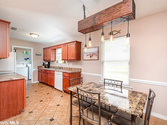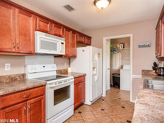 This 3 bedroom 2 bath open floor plan home is perfect for the first time home buyer! Split floor plan has tile throughout and located on a quiet cul-de-sac in a small neighborhood. Home is on a large lot with mature trees and fresh landscaping. Open field in backyard to enjoy the beautiful sunsets. Low utilities and NO HOA dues. Home is close to Beach Express, Magnolia Springs and Foley. Don't miss it!