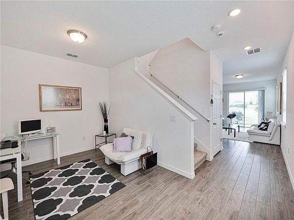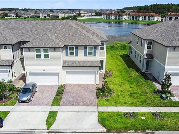 LOCATION - LOCATION - Welcome Home!. You're going to fall in love with this gorgeous WATERVIEW End Unit TOWN-HOME. This energy efficient home was BUILT IN 2019 and it comes with smart features including smart lock door, video ring doorbell, lighting controls and advanced thermostat. Downstairs you are greeted with a Flex space, upgraded tile and a modern open concept. The gourmet kitchen overlooks the spacious dining room and living room with tons of windows and natural light. Step out on your covered patio and take in the outdoors while enjoying morning coffee and your tranquil POND VIEW. Upstairs has a LOFT for bonus living space, a HUGE Master retreat with an elegant tray ceiling and lots of windows to enjoy the pond view and natural light. The Master Bath has dual sinks, upgraded tile and a walk in closet. This Meritage homes Delano floor plan has an upstairs laundry room and both the second and third bedrooms have walk-in closets. All Whirlpool home appliances come with and EXTENDED WARRANTY. Plenty of room for parking with a 2-car garage and a paver driveway. Feel like you're on vacation while lounging by the resort-style swimming pool overlooking the pond. Sidewalks throughout the community make taking an evening stroll through this beautiful neighborhood a pleasure. You CAN'T beat this location, nestled right off SR-417, 1.5 miles from the Florida Turnpike, easy access to Medical City and Lake Nona. Only 10 minutes to the Orlando International airport, close to multiple shopping centers and walking distance to many local stores and restaurants. Just waiting for you to make Arbors at Meadow Woods your next home.