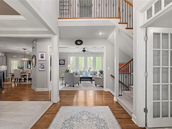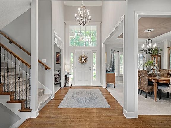 Welcome to your dream home! This impeccably updated two-story residence offers the perfect blend of modern comfort and outdoor paradise. Inside, you'll find a beautifully updated kitchen and a luxurious primary bath that elevate everyday living and the huge primary bedroom is cozy with its own fireplace. New carpet graces the main level, stairs, and bedrooms, complimented by custom plantation shutters and 2 additional fireplaces. The main level flows effortlessly to a large enclosed screened deck, perfect for entertaining. Step out onto the sunning deck that overlooks a luscious pool oasis with a newer liner. Enjoy evenings by the firepit in your beautifully landscaped, fenced yard. The exterior boasts a fresh coat of paint from a year ago, with all wood rot and stucco repairs meticulously addressed. The epoxy garage floor adds a sleek touch and was completed just four years ago. Also, a new air conditioner was recently installed. This home truly has it all. Located in the coveted Blue Valley School District, this stunning home with a finished basement and bar is ready for you to move in and enjoy!