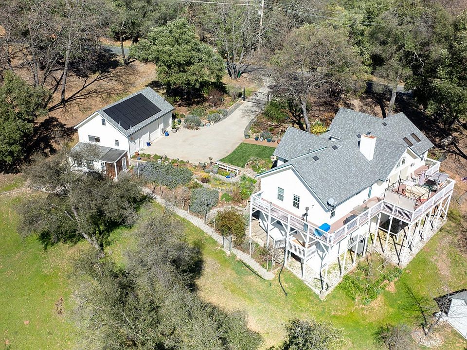 Exquisite home with Stunning Views! Nestled atop a serene hillside adorned with lush trees, this stunning home offers a tranquil retreat with breathtaking panoramic views. Boasting 3 bedrooms and 3 bathrooms, this meticulously crafted residence provides both comfort and elegance. Additionally, a detached 3-car garage with a workshop and greenhouse attached adds practicality and charm to the property. Features include beautifully remodeled kitchen and bathrooms in 2003, addition of the versatile separate unit is ideal for guests or home office, OWNED solar added in 2021, newer HVAC installed in 2022, and NEW roof in 2020. High quality expansive decking for outdoor entertaining and enjoying the views, spacious living areas with ample natural light, primary bedroom with luxurious ensuite bathroom, cozy fireplace in the family room for those chilly evenings and so much more. Step into a world of serenity and natural beauty with this hillside retreat. Whether you're relaxing on the spacious deck, tending to your plants in the greenhouse, or exploring your acres of land, this home offers a harmonious blend of comfort and natural splendor. Don't miss the opportunity to make this idyllic retreat your own. Schedule a viewing today!