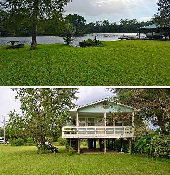 Rare find on Fish River. Quaint cottage is situated on a double lot with 200 feet of waterfront. From the deck you have exquisite panoramic views of the river. The main house can be renovated and added on to... or keep its existing cottage charm. The property has a great boat dock and has boat launch. The home is on pilings so you can take advantage of the underneath space for cookouts and river parties.