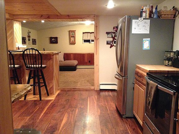 Charming county cabin with multi-level decks surrounded by its own 4.5 acres. Seller says "if you are looking for a quiet neighborhood, with great neighbors and plenty of wildlife, like deer and turkey, this is the place for you." The oversized, newer two stall garage sports a great workbench. It includes a third, smaller bay door perfect for storing your ATV, snowmobile or lawn tractor. This home is heated with hot water baseboard, operated with propane or from the wood burner, whichever you prefer. There is also an insert in the stone fireplace in the living room what would keep the whole place warm and toasty. This attractive kitchen with its deep double sink, stamped concrete counter and beautiful wide plank hardwood floors is delightful. There's also a bar that looks into the living room and is the perfect place to sit with a cup of coffee, tea or wine while checking email or catching up with friends. I am sure you will be enchanted with this cabin, so call today to view it.