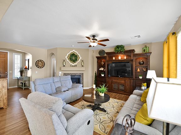 Beautifully upgraded home in Highlands Ranch. Built in 2007, Remodeled in 2017 with new paint, flooring and countertops. This 3 Bedroom floorplan was adjusted to a 2 Bedroom with a Den. Easily restored back to a Bedroom. Open concept floor plan with 9' ceilings and lots of windows for natural light, shows like a model. Kitchen has an Island, Newer appliances, Granite counter tops and new wood look tile flooring, don't forget the large walk in pantry and under cabinet lighting. Gas Fireplace. Outdoor entertaining made easy with an extended patio with pavers, extra lighting, low maintenance landscaping and mature trees. Backs to the Greenbelt for a more private feel. Large 3 Car garage, and a nice storage shed in the Back yard. Great location in the Heart of Chino Valley