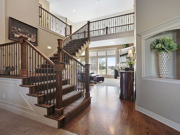 STUNNING 1.5 STORY HOME - Spacious open floor plan. Gourmet kitchen with granite kitchen island,Wolf gas range, pantry! Walk out from the 2nd story Den onto a Trex deck overlooking the 5th hole. Enjoy lower level family room featuring wet bar,media area,wine cellar. Covered/screened stamped patio, beautiful landscaping! Cost of new construction is soaring - Consider this lightly lived in 5100 square ft. home with/so many upgrades & premium golf course lot/view. Amazing Value - Amazing Home- Amazing View!