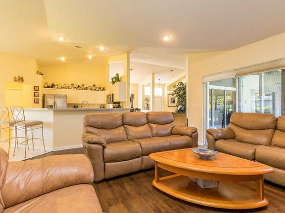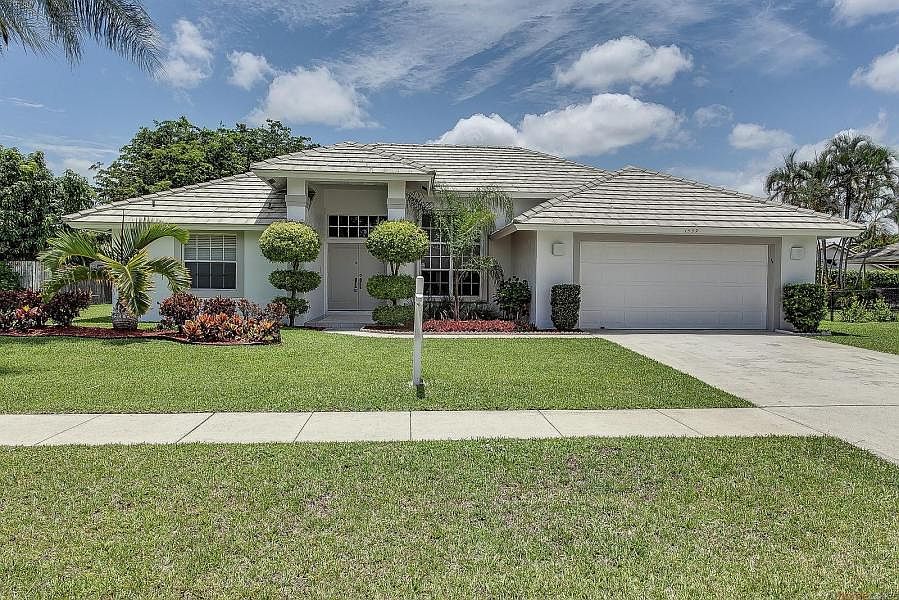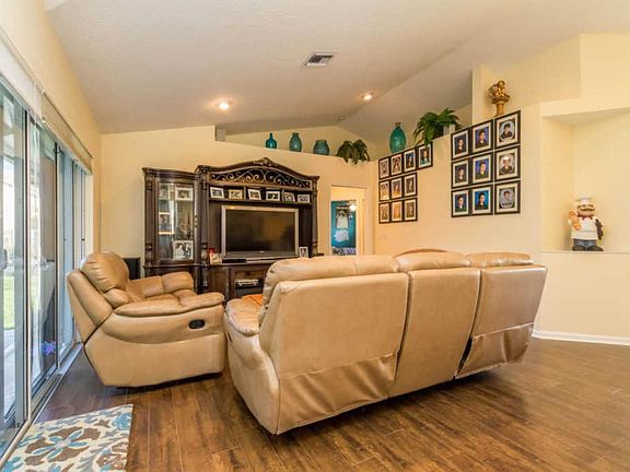 Great 4 bedroom, 2 1/2bath family home in Greenview Shores-NO HOA! Big open floor plan-vaulted ceilings and wood laminate floors in living areas and bedrooms have carpet (NEW) for comfort. All bedrooms(except 1) have built-in closet systems. Kitchen, with eat-in kitchen area, has stainless steel appliances(3yrs) including double oven and oversized fridge. BRAND NEW ROOF with double-reinforced, 3-D shingles! BRAND NEW WATER HEATER for house and WELL PUMP for sprinklers! AC (7years). Interior freshly painted and outside newly landscaped. Accordion hurricane shutters on big windows in back and front of house. Smaller window for Eat-in kitchen and bedrooms have panels. Garage has been converted to office/storage space--easily be converted back to full garage. Large yard--room for pool!